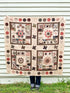 The Daisy Chain quilt by House on the Hill Quilts is a combination of Patchwork, Applique and stitchery. Shown here with Japanese linen fabrics.